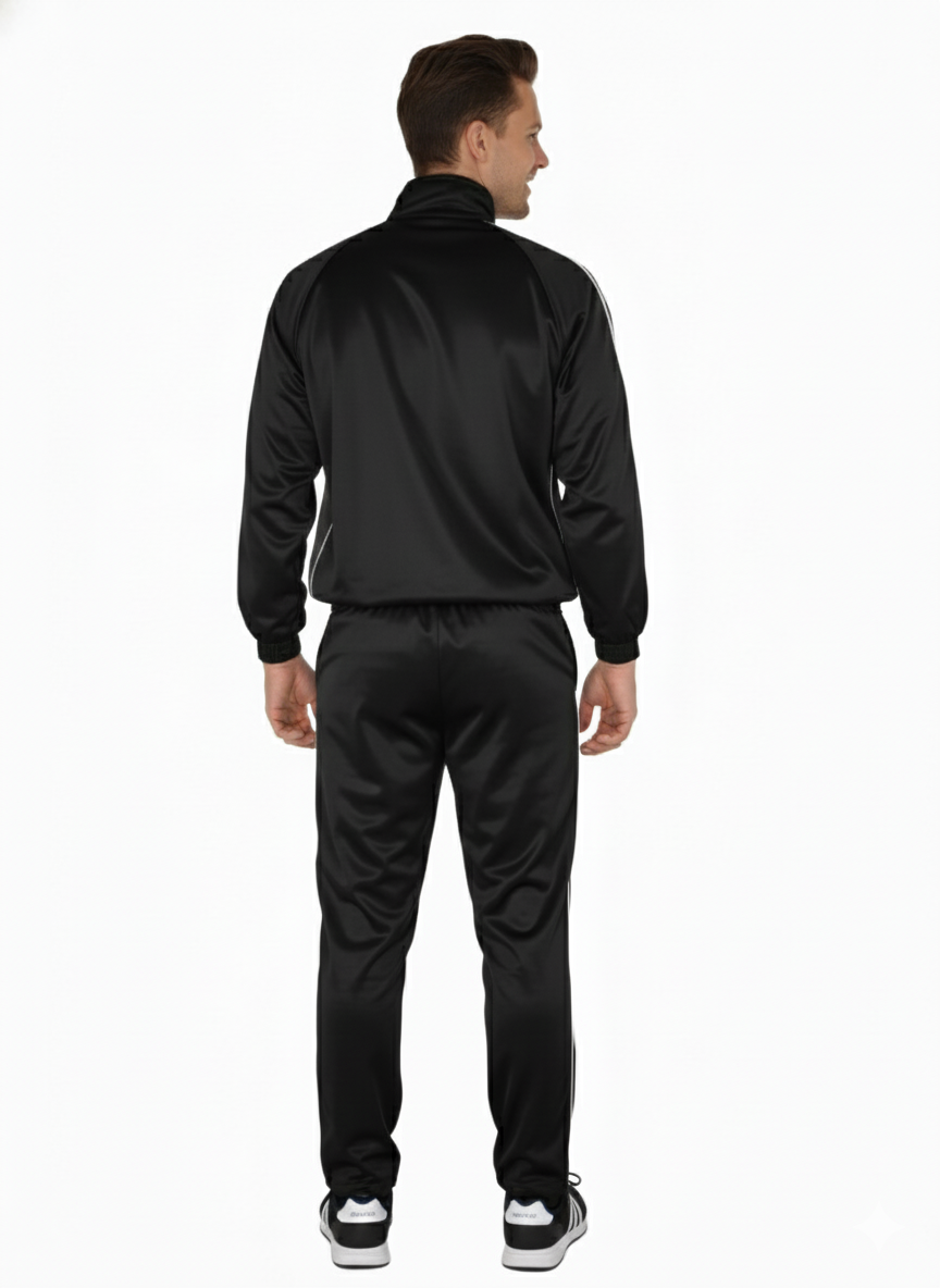 Upgrade your everyday activewear with this Premium Black Athletic Tracksuit, designed for comfort, performance, and modern style. Crafted from smooth, lightweight polyester fabric, this two-piece set includes a full-zip track jacket and matching track pants, making it perfect for workouts, travel, lounging, or casual wear.