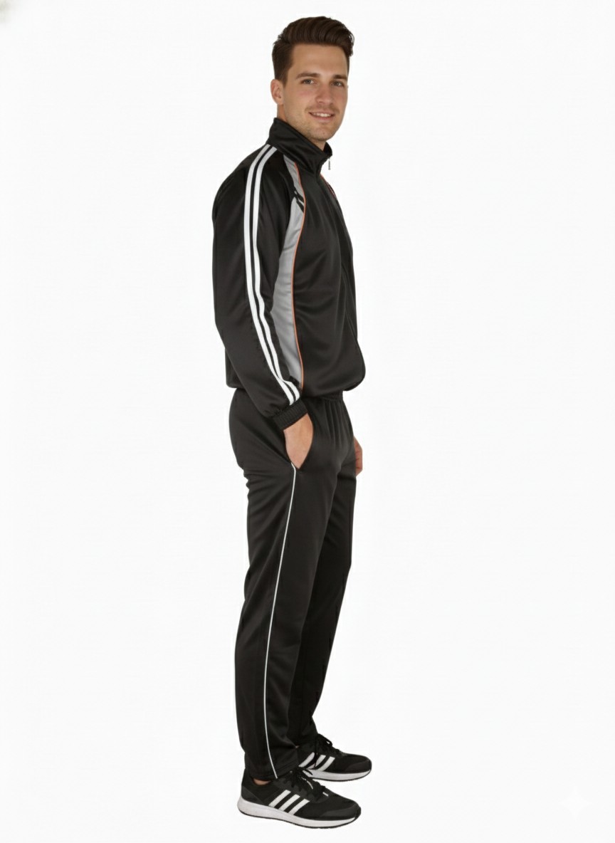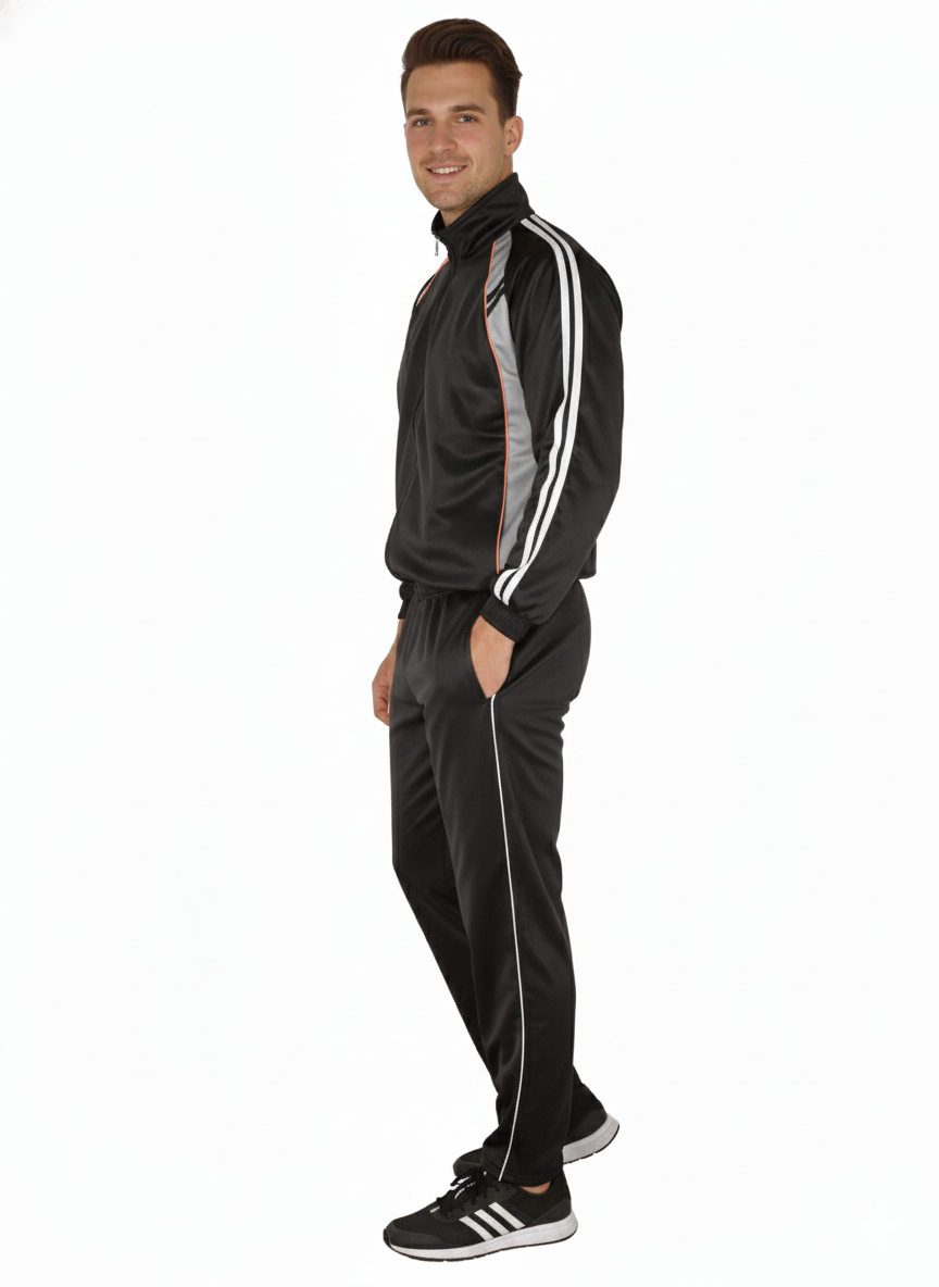 The jacket features a stand-up collar, ergonomic paneling, and contrast piping that enhances its sporty appeal. The pants offer a relaxed athletic fit with an elastic waistband for all-day comfort. Breathable, quick-drying, and easy to maintain, this tracksuit is ideal for men who value versatility and performance in their wardrobe.